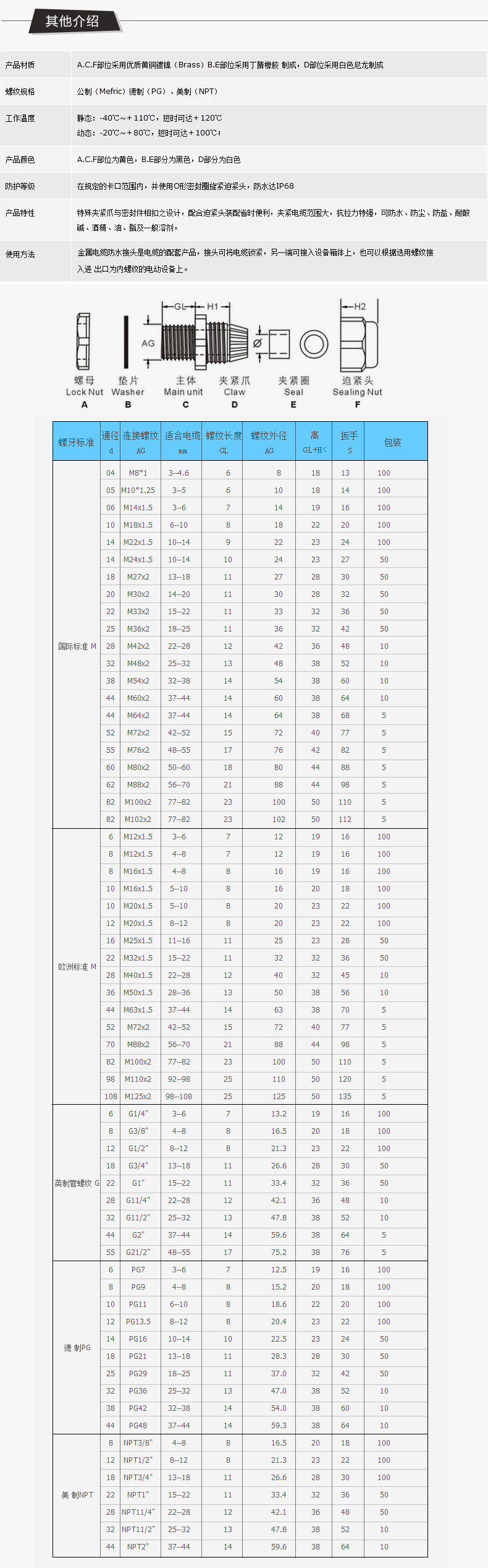 基本介紹:A.C.F部位采用優(yōu)質(zhì)黃銅鍍鎳( Brass) B.E部位采用丁睛像膠制成,D部位采用白色尼龍制成。
